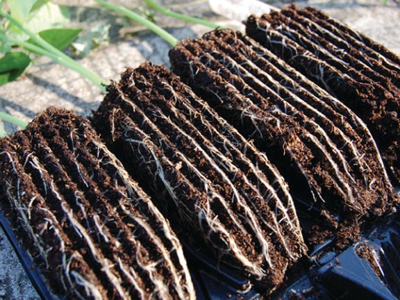 Cells open like a book for easy transplanting without roots disturbance. Grooves direct roots straight down. Air-pruning systems prevent pot-bound plants