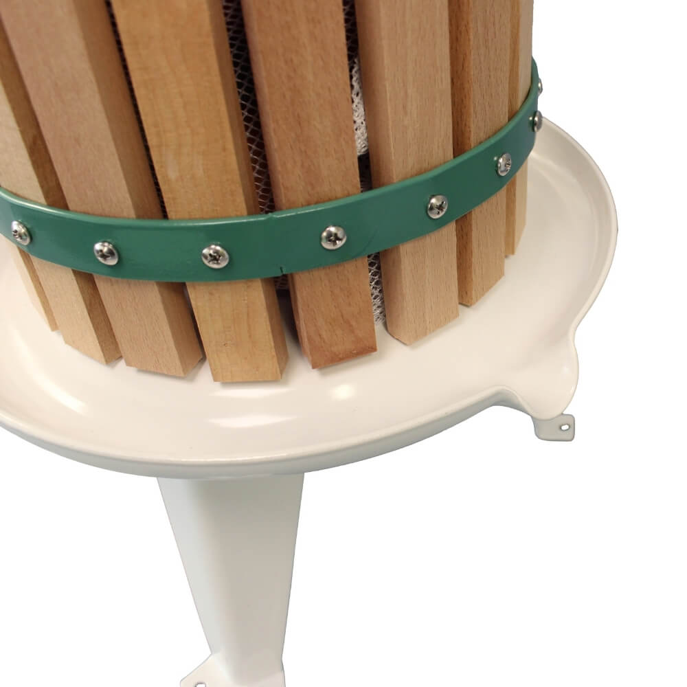 This manual wooden fruit and apple press crushes fruit to produce fresh juice for apple juice or other beverages. Its twist and extend mechanism presses chopped fruit efficiently, giving home brewers a reliable method to create cold pressed fruit juice. The press suits a range of produce and is available in three sizes to meet different needs.