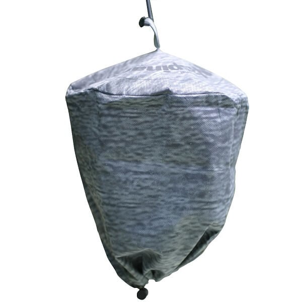 The Waspinator when puffed up is approximately 30cm deep with a diameter of 24cm and will protect a 15m radius.