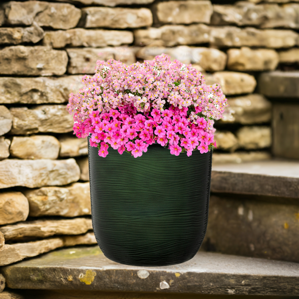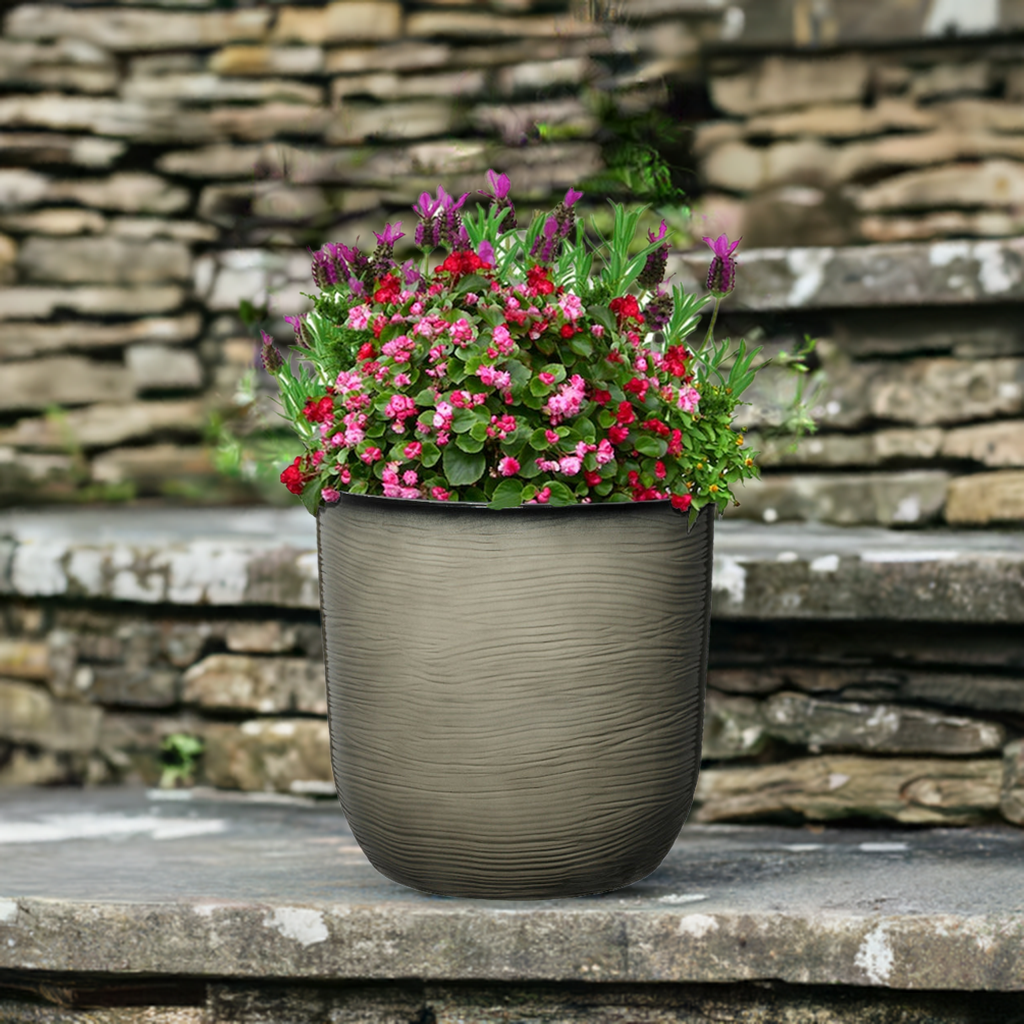 Our recycled ceramic-effect plant pots combines the traditional elegance of ceramic with the robustness of recycled plastic it withstands adverse weather, making it ideal for any season.