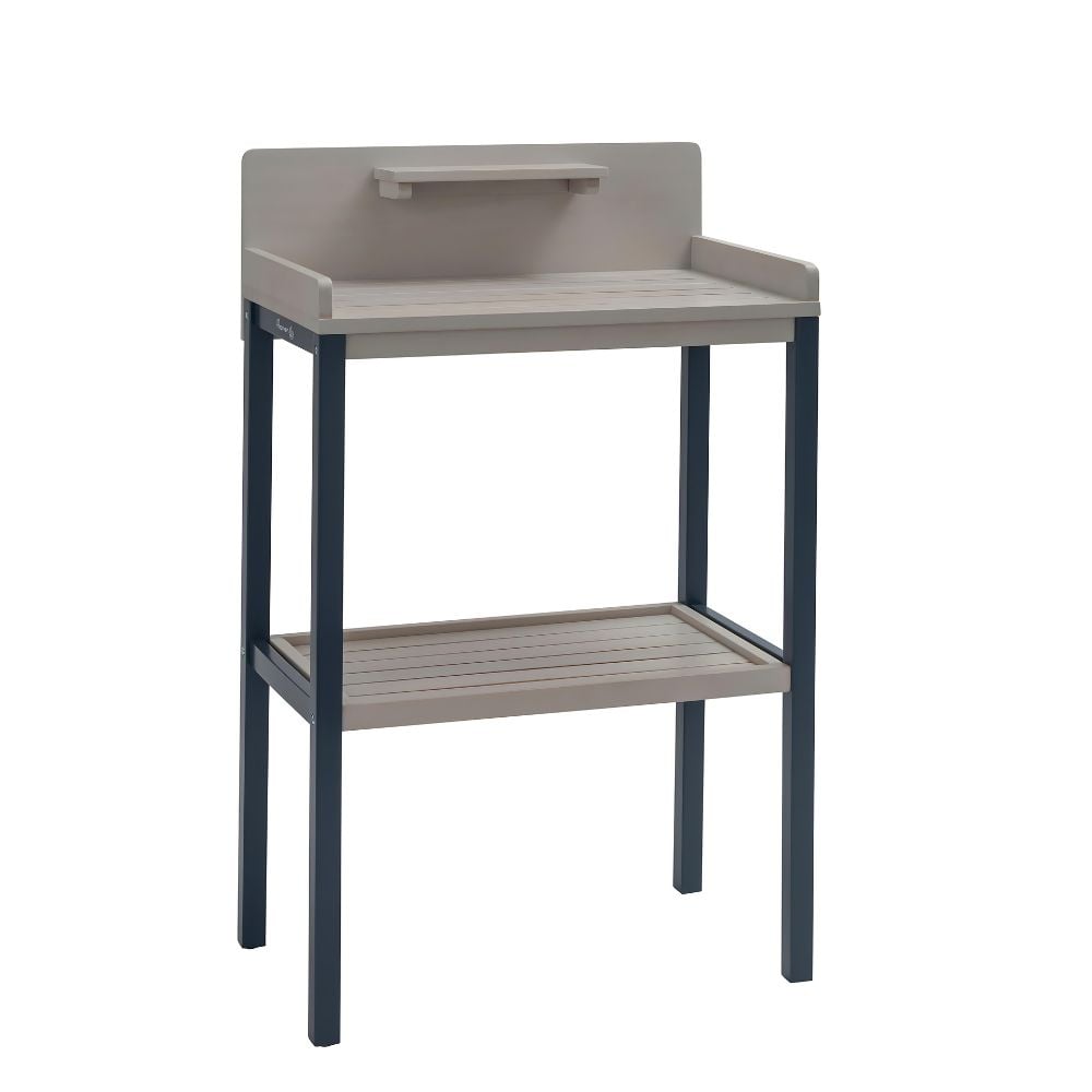 The stylish garden potting table is both elegant and functional, making it an ideal addition to any outdoor gardening space. Made from sturdy wood with a grey and blue painted finish, this table provides a practical workspace for all your gardening tasks.