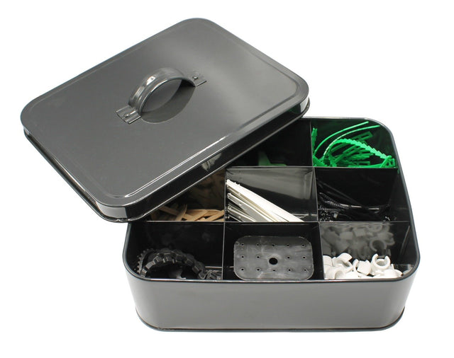 This lovely powder coated steel box comes with 9 compartments full of handy items to be used around the garden. Once all the bits and bobs have all been used, you still have a tin to store those essential little garden tools or just refill from Gardening Naturally.