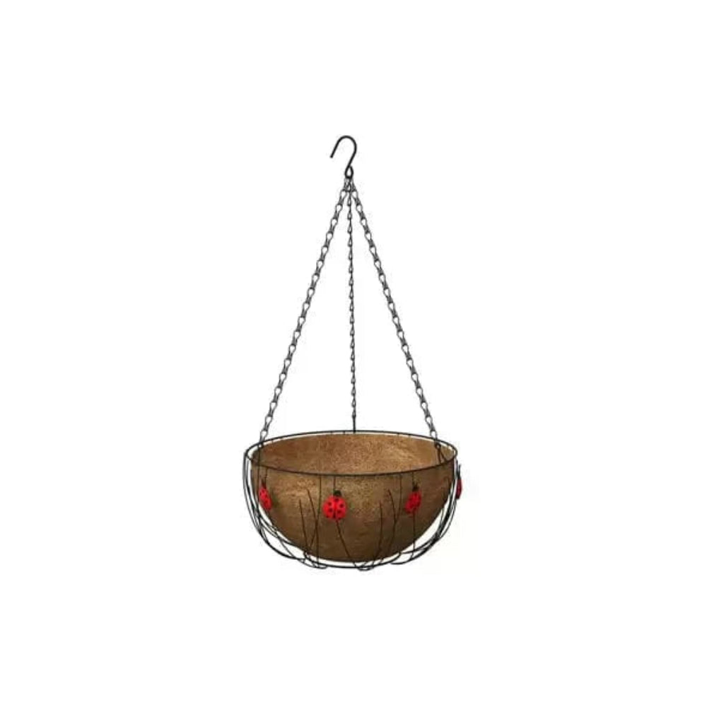 This hanging basket is made from metal and features a charming ladybird motif, the hanging planter includes a built-in coco liner to support healthy plant growth.