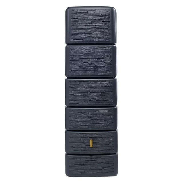 The slim stone wall water butt is designed to look like stacked stone, meaning it has a natural and rustic aesthetic that mimics the appearance of real stone. This can help it blend in seamlessly with a variety of garden styles, particularly those that feature natural elements such as rock gardens or landscaping with stone features. The design gives the impression of being made out of stacked stones giving it a natural look that blends in with the surrounding.