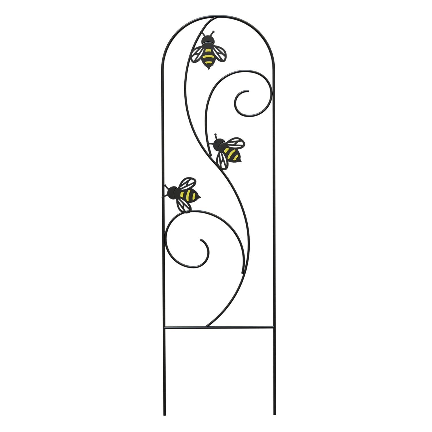 The trellis creates a stable structure for plants to grow against which can then be tethered to the intertwining design for stability and aesthetic appeal. Ideal for large pots, its distinctive black finish with yellow accents adds a striking visual appeal to your garden.