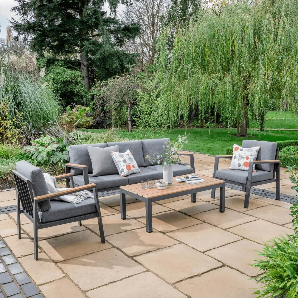 The Lounge Set boasts a contemporary look with its powder-coated anthracite aluminium frames. This elegant design is also corrosion-resistant, ensuring your furniture will look great for years to come.