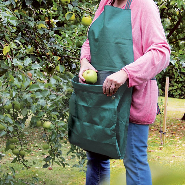 This practical harvest apron will make ease of collecting, picking and harvesting. It's extendable pouch can be adjusted using its popper and hook & loop fasteners. It is ideal for harvesting various crops that can then be emptied by loosening the fastenings.