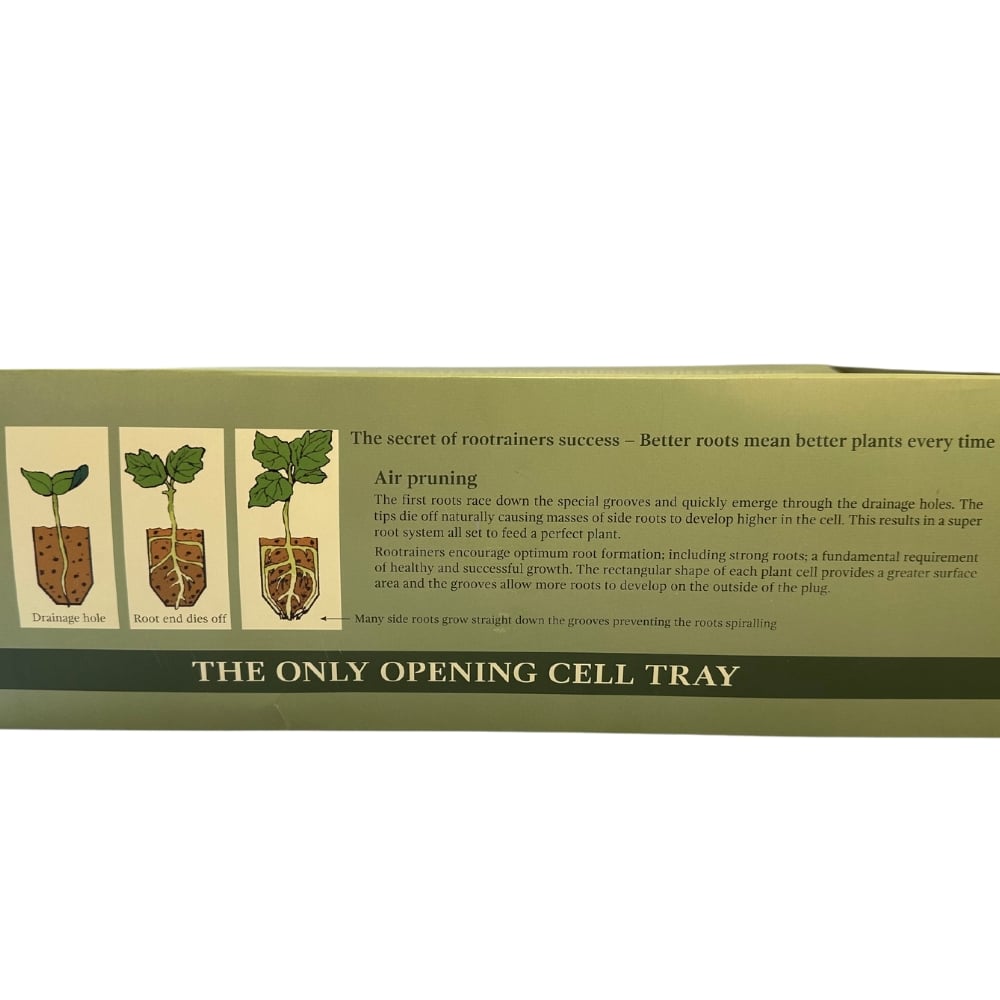 Cells open like a book for easy transplanting without roots disturbance. Grooves direct roots straight down. Air-pruning systems prevent pot-bound plants