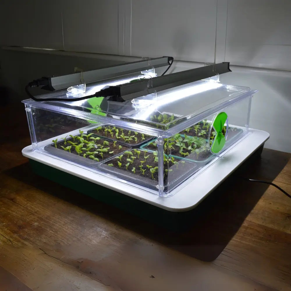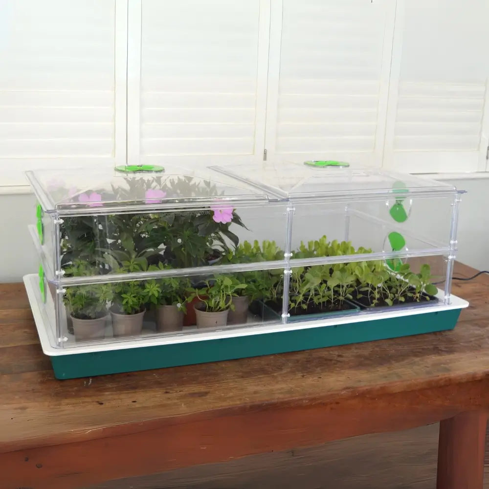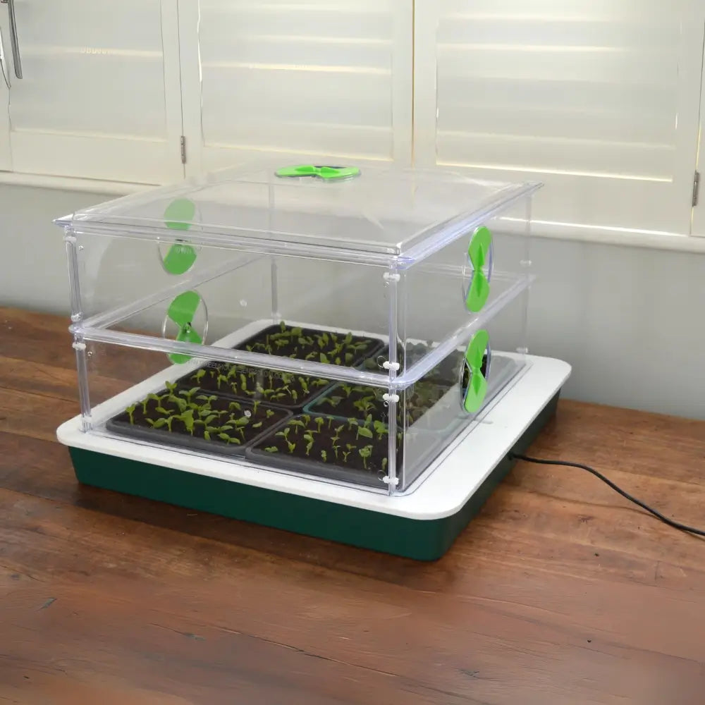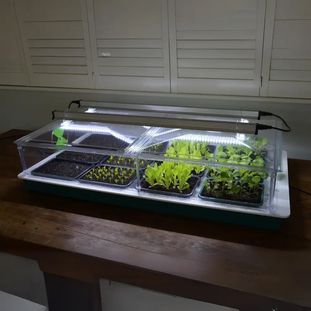 - Capacity: 6 half-seed trays or 25 seed pots